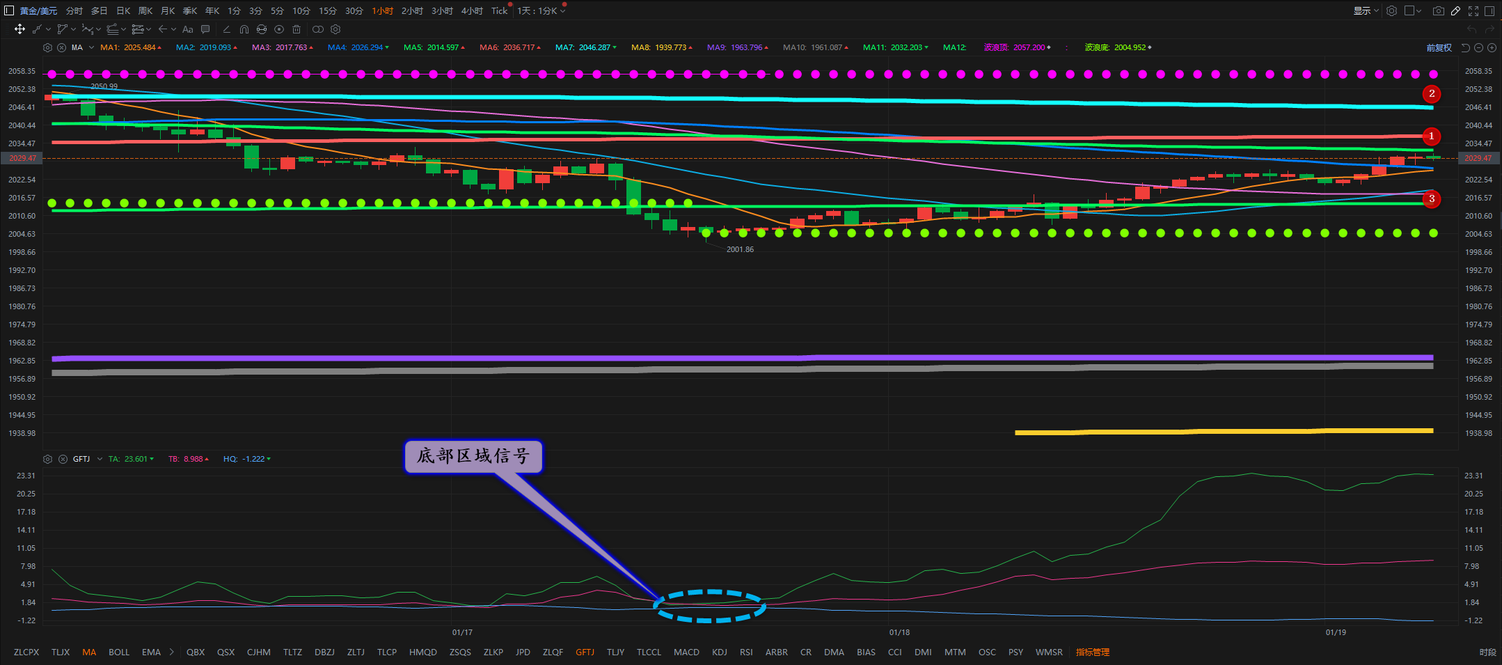 通过对黄金小时图解析得知,黄金早盘冲高回落目前已经到达下方1号均线的支撑位,我们从下方的附图可以清楚的看到目前已经再次出现回调买入信号,上一次出现昨日反弹到上方2038一线,今日再次出现预计将会继续向上反弹,短期我们重点关注345号均线的压制,但是下方也不排除意外到达下方2号均线的支撑,短期在操作上我们继