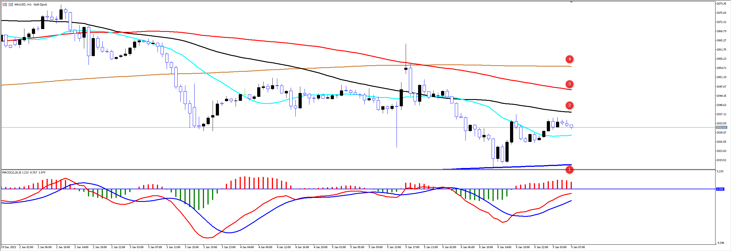 通过对黄金小时图解析得知,上一个交易日行情如期先跌后涨,在上方2064一线受阻回落收盘于2045一线,我们从下方的附图可以清楚的看到目前短期资金已经开始走强,多头主力也开始进仓,但是短期上方受制于双轨和布林带中轨的压力,短期下方我们重点关注13号的支撑,盘中不排除受数据影响进一步下探到3号强支撑位,预计短期