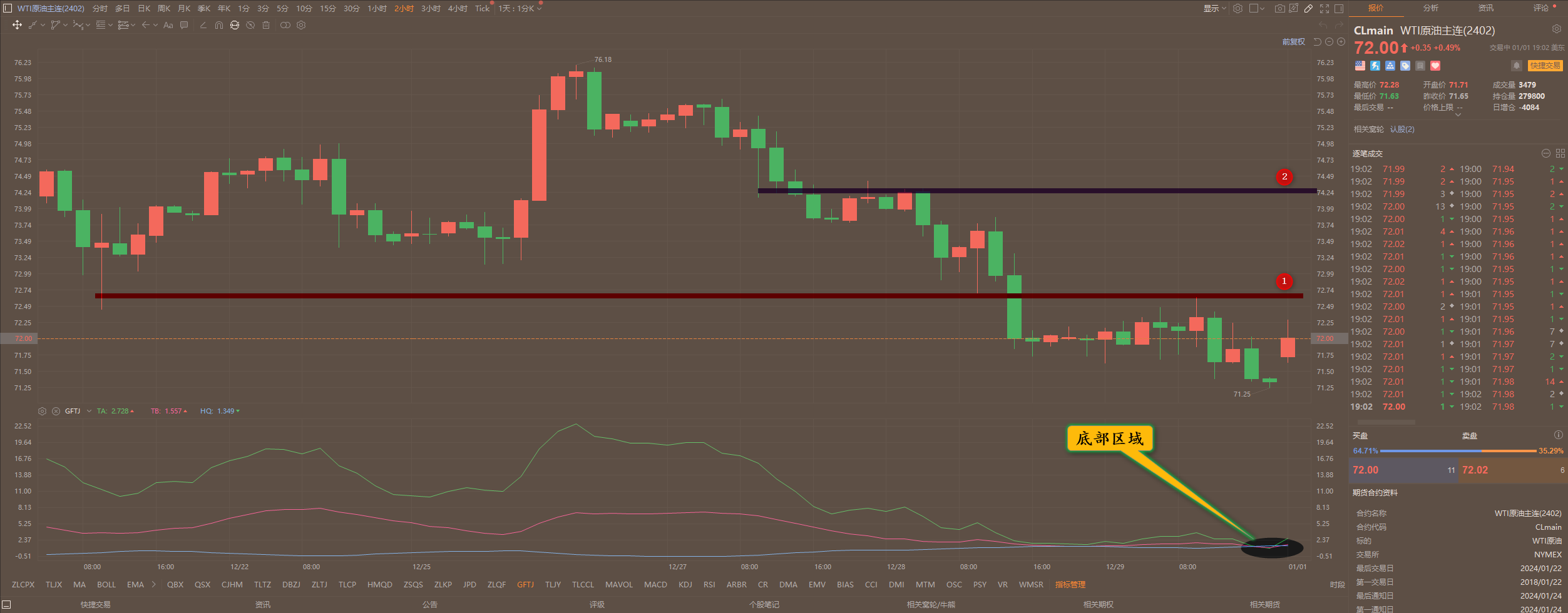 通过对原油小时图解析得知,昨日行情继续延续下跌走势,盘中反弹无力晚间再次回落到下方71.70一线,我们从下方的附图可以清楚地看到筹码比较集中已经出现了底部信号,并且下方连续出现双针探底信号非常有可能要反弹一波,短期上方我们重点关注上方12号的压力位,短期在操作上我们继续高空低多思路,具体建议如下: