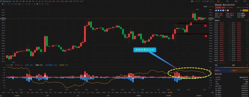 通过对黄金小时图解析得知,昨日行情先涨后跌再上涨,在盘中形成窄幅震荡走势,早盘到达上方2068一线冲高回落,目前短期行情继续沿着均线系统震荡上行,我们从下方的附图可以清楚的看到昨日早盘盘中出现了回调买入信号盘中出现小幅上涨,晚间再次在下方2052一线出现了短期抄底信号,下半夜出现了拉升动作,短期大方向依