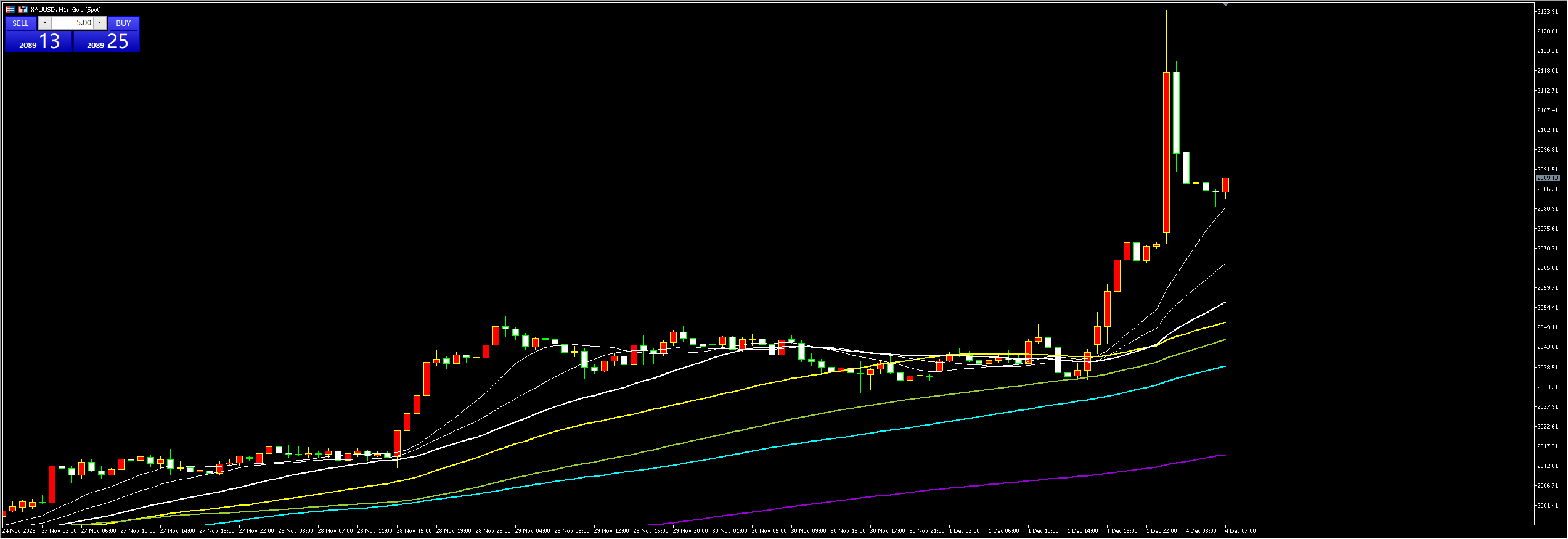 通过对黄金小时图解析得知,黄金从早盘一路狂飙到达上方2146一线冲高回落,目前已经到达下方2081一线止跌反弹,同时也是前期反弹的高点位置相对而言也是要反弹以下的,我们从图中可以清楚的看到上周五回落到下方2034一线的均线支撑位得到有效支撑行情一路突破上方的阻力位节节高升创历史新高,前期就已经说过大方向依然