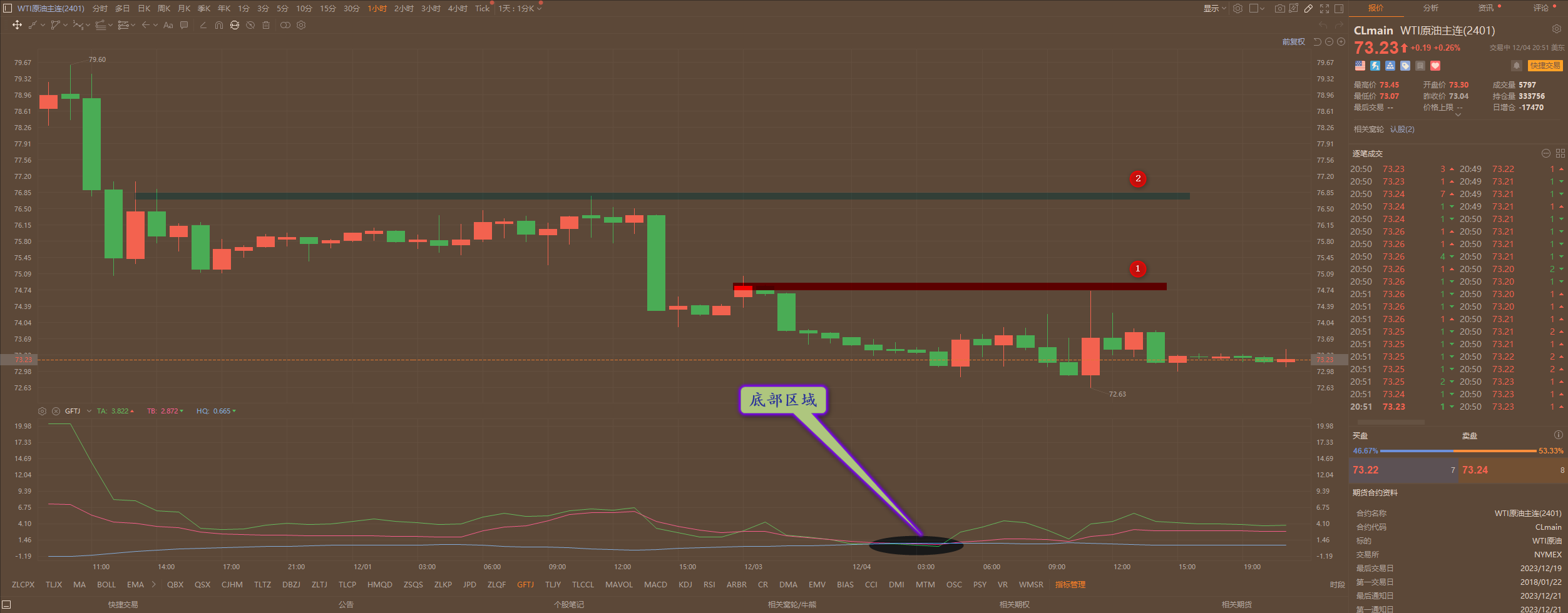 通过对原油小时图解析得知,昨日行情先涨后跌在底部区域形成窄幅震荡走势,我们从下方的附图可以清楚地看到在下方73一线出现长期中期以及短期粘合迹象说明各路都有枯竭,多头主力需要时间和空间吸取新的筹码进仓,短期上方我们重点关注12号的压力位,下方我们继续关注72.80一线的支撑以及下方70.40一线的支撑,短期在操