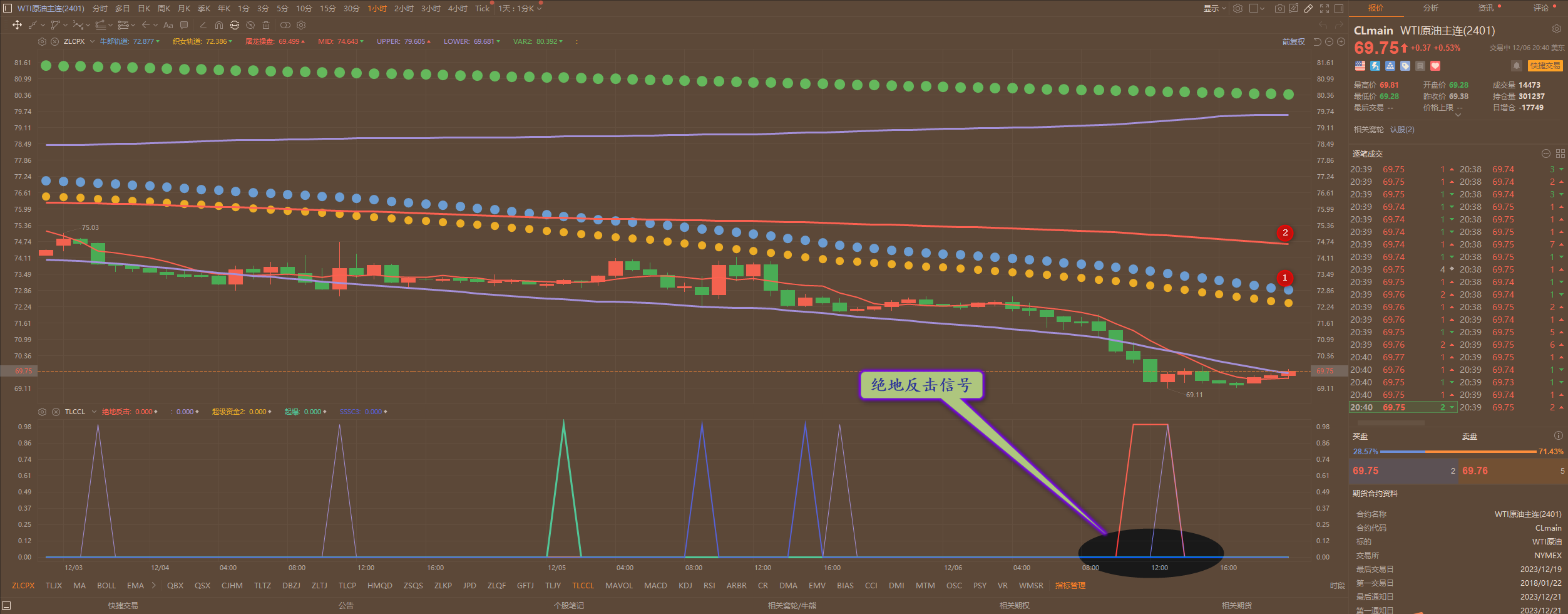 通过对原油小时图解析得知,昨日行情先涨后跌晚间一度到达下方69.10一线目前依然小幅反弹中,我们从下方的附图中发现在69.10一线已经出现了绝地反击信号预计即将要反弹一波,短期上方我们重点关注12号的压力相对而言对后期的影响也是比较大的,就看短期的反弹力道如何了,短期大方向依然下跌不变短期在操作上我们继续逢