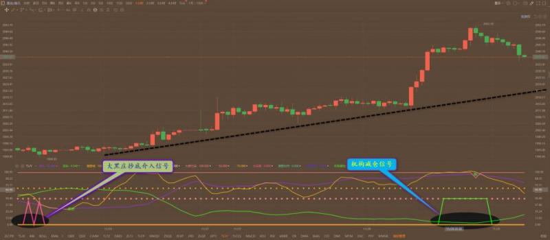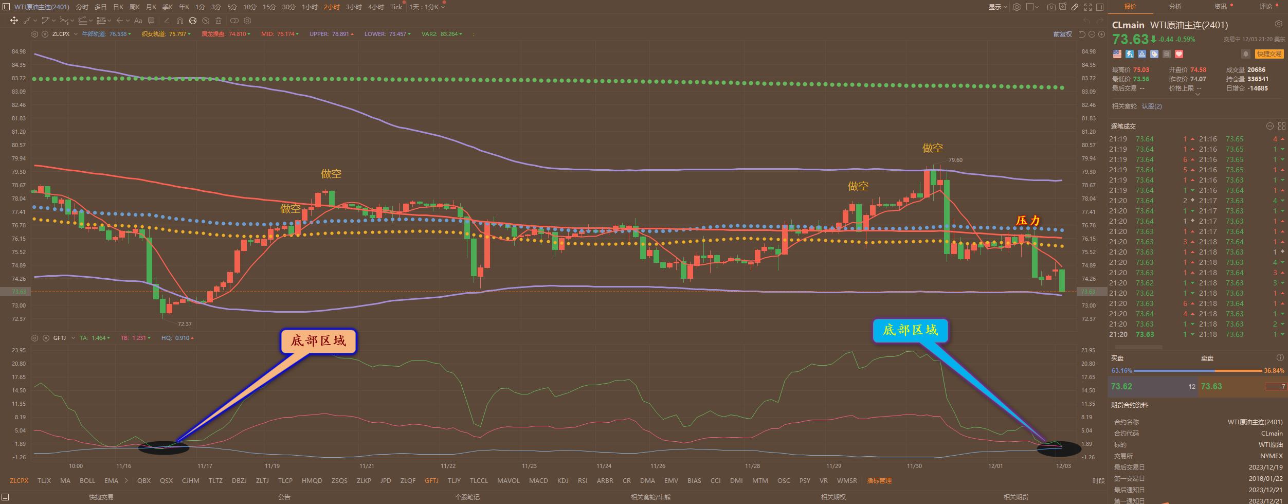 通过对黄金小时图解析得知,黄金从早盘冲高回落以来到目前为止一直是处于窄幅震荡调整状态,我没从下方的附图也可以清楚的看到在前期1989一线的底部区域出现大黑抓抄底信号行情从而拉升了一波,今日在早盘高位小幅附图显示有几个减仓信号,目前虽然调整幅度不大但是短期还是有一定的影响,短期下方我们重点关注上升趋势