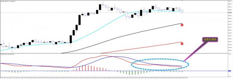 通过对黄金小时图解析得知,昨日行情先跌后涨继续在高位窄幅震荡调整,自从均线系统从下方开始突破站稳并且形成多头趋势一路向上震荡上行突破,目前已经接近昨日所说的2062一线的压力位,短期我们从下方的幅图也可以清楚地看到目前在零轴上方运行虽然有开口向下运行的动作但是一直保持比较强势的节奏,短期有进一步突破