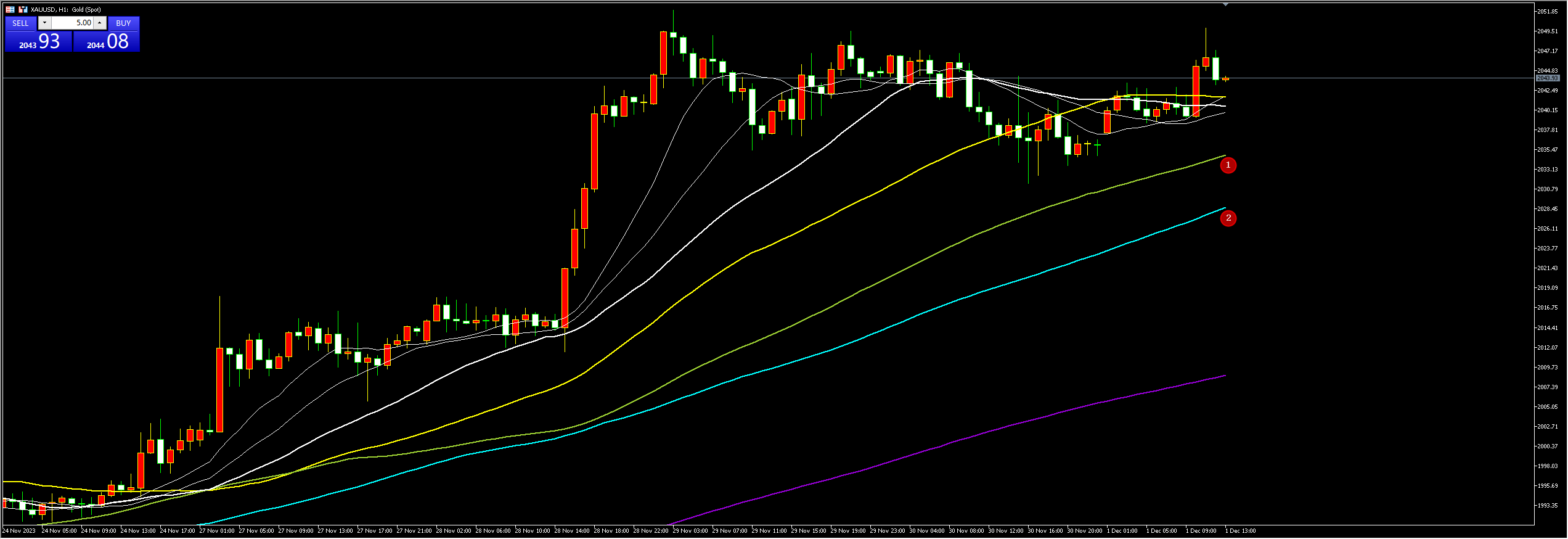 通过对黄金小时图解析得知,黄金从早盘到目前为止继续窄幅震荡调整,我们从下方的附图可以清楚的看到在下方2033一线已经出现了小机构建仓信号从而导致行情的小幅拉升动作,目前还没有走出震荡区间短期应该是还要窄幅震荡调整我们重点下方1号支撑位,上方继续关注2号压力位,短期在操作上我们继续高空低多思路具体建议参