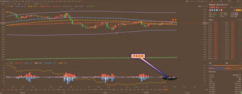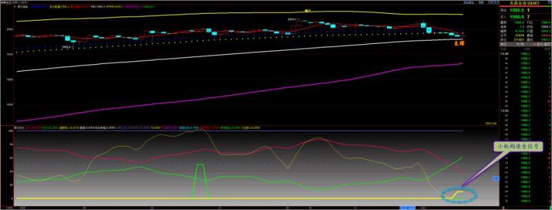 通过对黄金2小时图解析得知,黄金从早盘继续冲高回落到达下方1975一线止跌反弹,从主图中可以看到已经接近布林带中轨的支撑,从下方的附图中也可以清楚的看到已经出现小机构进仓信号,特别提示在到达下方重要支撑位出现小机构建仓信号是一种比较积极的信号说明有人在底部区域抄底,相对而言对后期的进一步上涨做好铺垫,