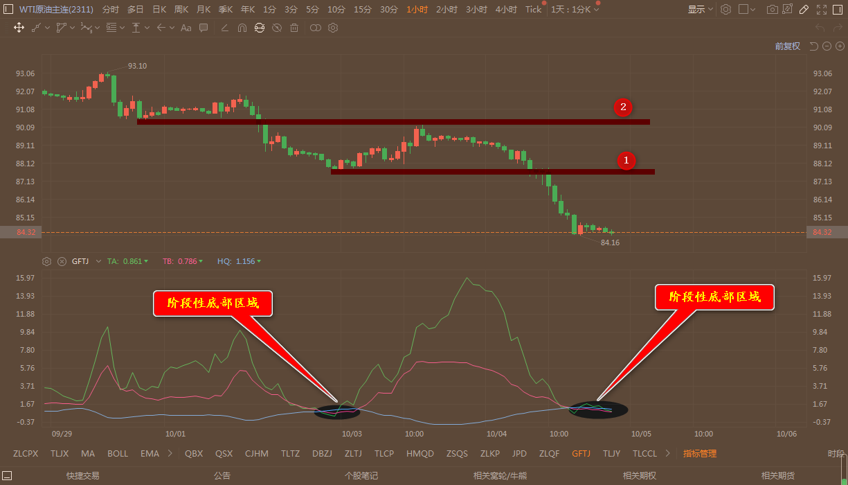 通过对原油小时图解析得知,昨日行情反弹无力继续延续下跌走势,目前到达84.10一线有所减缓下跌走势,我们从下方的附图可以清楚的看到已经再次出现阶段性底部信号,在上一次出现的时候小幅反弹了一下到达上方2号压力位冲高回落,目前上方一号压力位已经反过来成为第一压力,短期在操作上我们继续重点逢高做空,具体建议