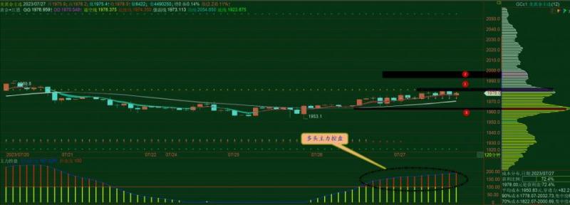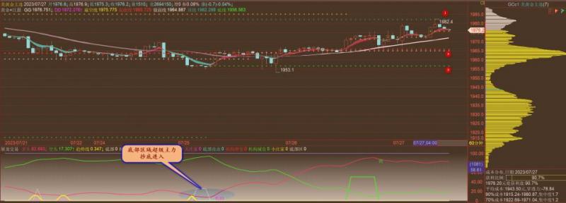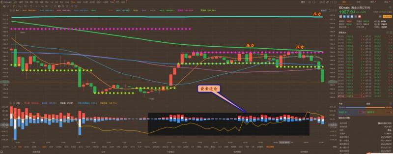 通过对黄金小时图解析得知,黄金从早盘在下方得到支撑反弹上涨(一号支撑),目前在1973一线受阻回落,短期下方我们继续关注下方的12号的支撑即可,上方号压力位非常的重要一旦放量突破将会继续加速震荡上行,之所以会出现启动上涨在前几个交易日就已经专门通知过了,在底部区域就已经出现超级主力抄底的信号,我们从下