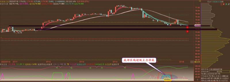 通过对原油小时图解析得知,这两天受交割期影响行情盘中异常波动属于正常情况,自从高位冲高回落以来目前已经到达下方前期的反弹高点1号支撑位昨日晚间盘已经反弹一波,我们从下方的幅图可以清楚的看到已经再次发现超级主力抄底信号相对而言说明短期的调整已经到位行情继续向上4运行的可能性比较大前期也已经说过下方多