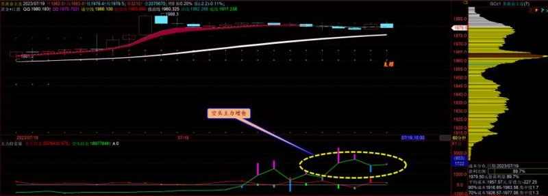 通过对黄金小时图解析得知,黄金从早盘到目前为止在高位窄幅震荡调整运行,上方压力位相对而言也是比较强一点,短期至少要调整进行技术性修复动作,我们从下方的附图也可以清楚的看到,空头主力已经增仓并且已经控盘,行情冲高回落的可能性进一步增加下方我们重点关注1958-1962区间的支撑即可,在操作上我们继续高空低多