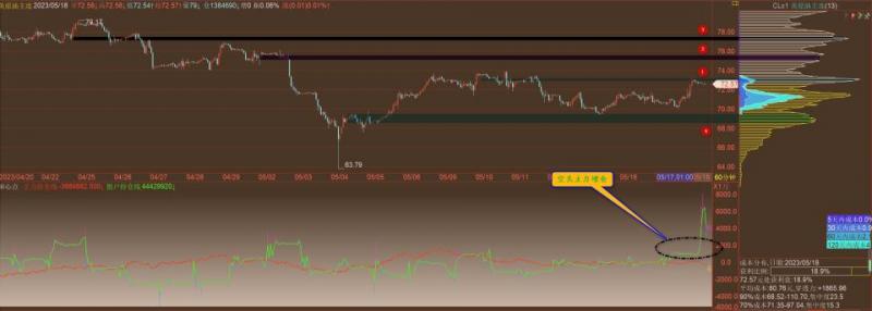 通过对原油小时图解析得知,昨日行情先跌后涨在下方得到支撑反弹晚间到达上方1号压力位冲高回落,这两天属于交割期行情出现异常波动属于正常现象,我们从下方的附图可以清楚的看到行情反弹上涨但是空头主力不断地增仓并且占优说明空头主力在反弹的高位大量的建仓,今日盘中不排除进一步的拉升突破到达上方的23号的压力位