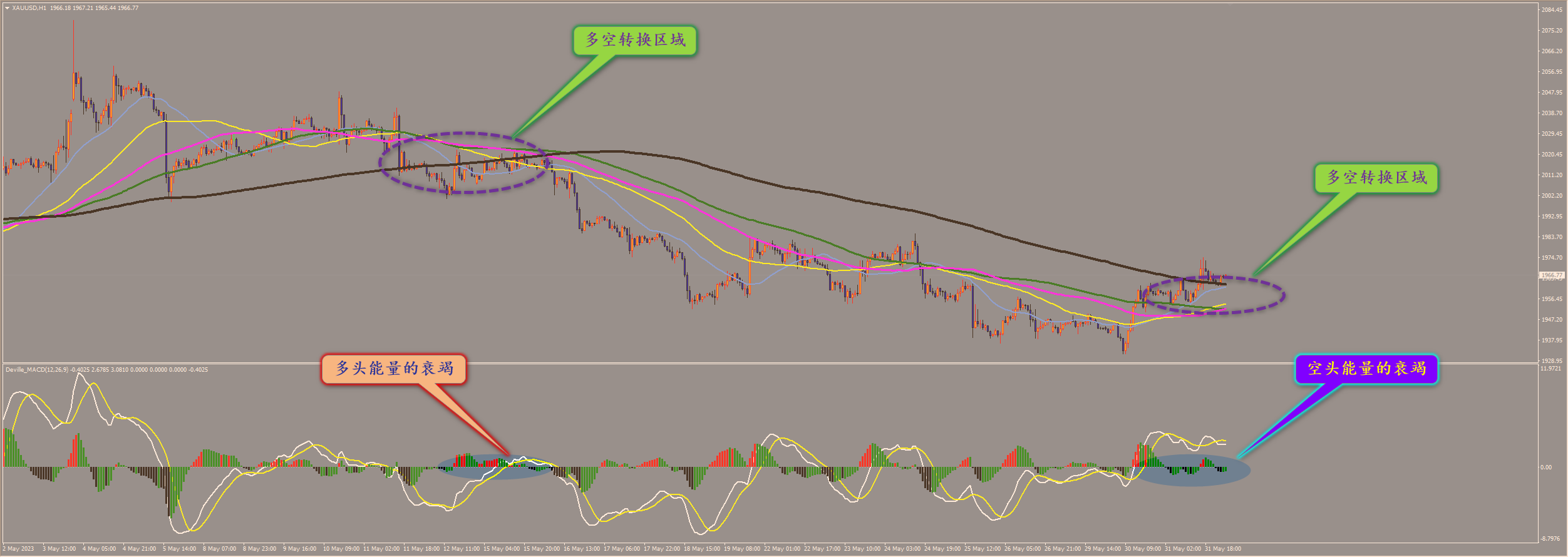 通过对黄金小时图解析得知,黄金从早盘到目前为止如期冲高回落预计机会回到下方1975/76附近的样子,我们通过下方附图可以清楚地看到在前期反弹的高点位置附近进行横盘震荡的时候但是我们下方波段趋势已经形成死叉迹象从而导致行情一波的下跌,目前在底板区域进行窄幅震荡调整的时候我们再次发现已经形成金叉预计将要进行