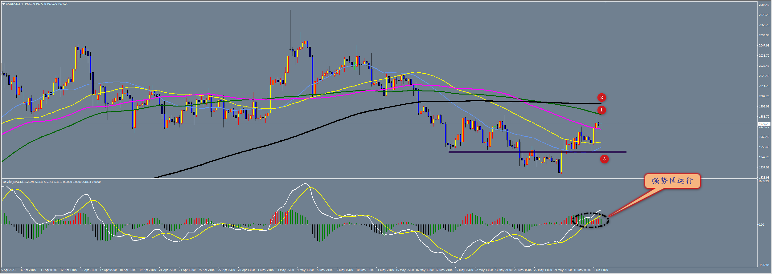 通过对黄金4小时图解析得知,昨日行情如期先跌后涨到达下方的30日均线的支撑位附近止跌反弹晚间一度到达上方1983一线目前有所回落昨日就已经说过小时级别即将形成多头趋势目前还需要进一步的震荡调整以时间换空间的手法进一步完成转变,但是目前4小时级别依然是受到上方12号均线的压制虽然下方ACD已经介入强势区运行但是