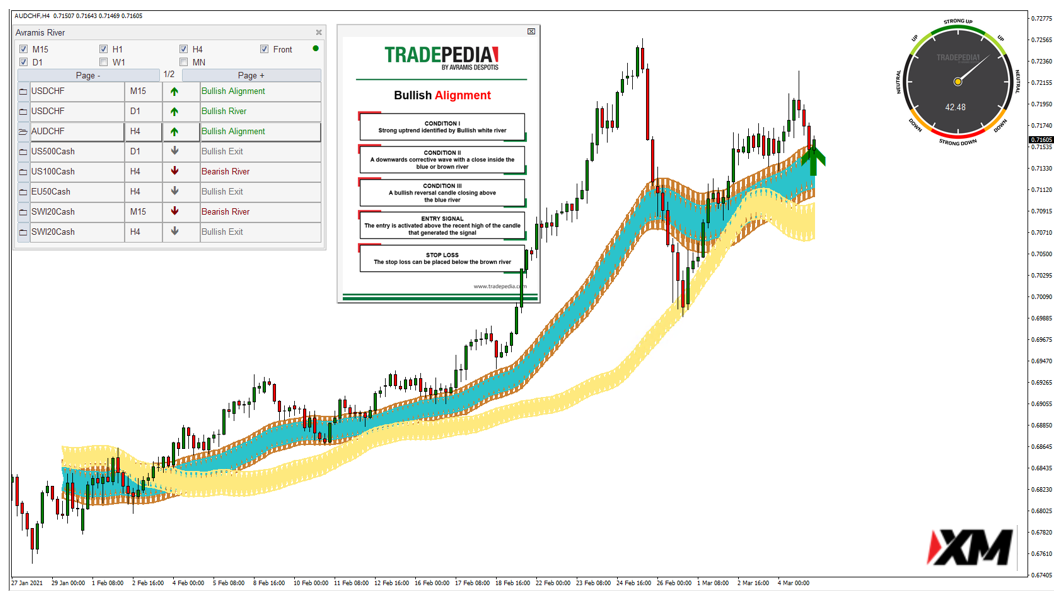 Avramis River是一款全智能根据系统条件实时自动筛选交易信号的交易系统,让交易者随时随地只要在电脑前打开交易软件,利用自动计算筛选功能在自己偏好的交易品种上扫描交易信号,周期为M15 H1 H4 D1 W1 MN。
