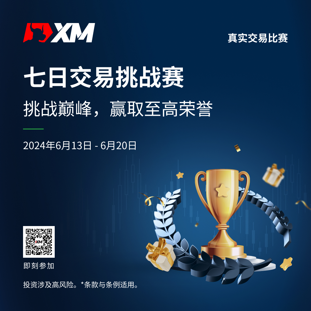 2024年06月13日 至 06月20日 期间,参加为期一周的七日交易挑战赛,与全球交易员一较高下,瓜分总值 $20,000 美元 现金奖励!