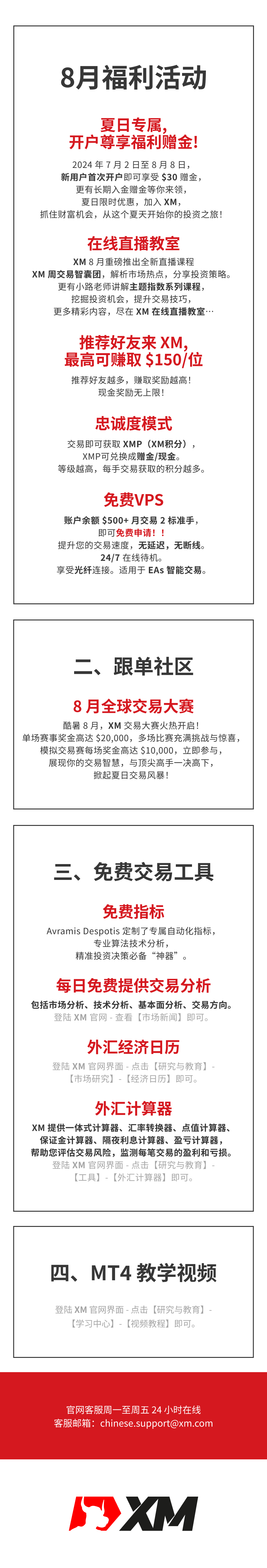 酷暑来临,投资良机正热! 2024年8月,XM推出限时夏日专属福利赠金活动,并为你带来全新线上直播课程,助力你的交易旅程。立即加入XM,享受这个夏季的投资盛宴!