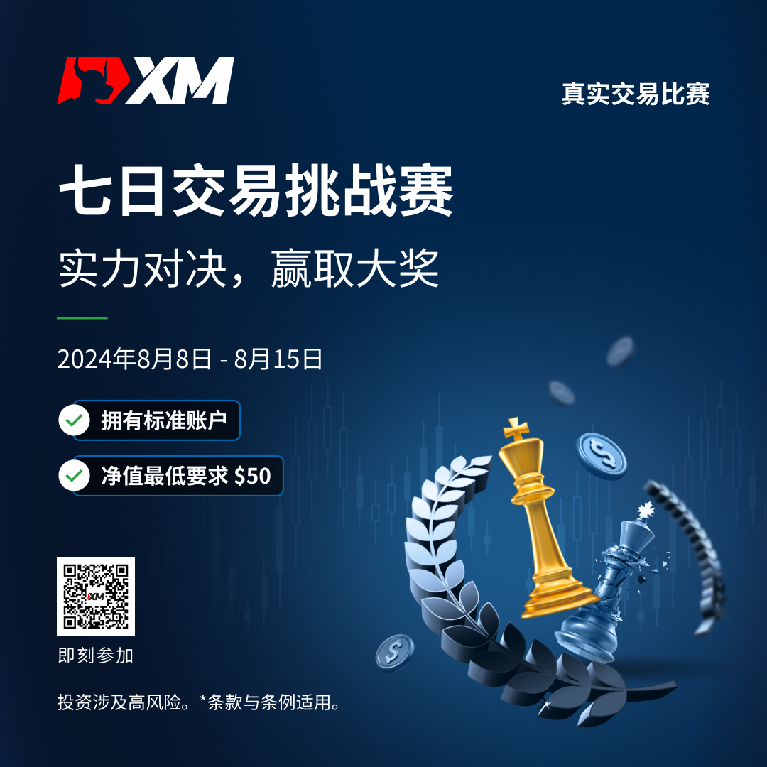 2024年8月8日 至 8月15日 期间,参加为期一周的七日交易挑战赛,与全球交易员一较高下,瓜分总值 $20,000 美元 现金奖励!