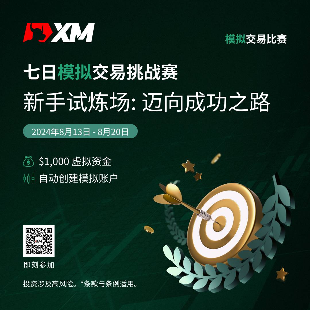 2024年8月13日至8月20日期间,报名参加XM模拟交易比赛,挑战自我,制定交易策略,瓜分总值 $10,000 美元 现金奖励!
