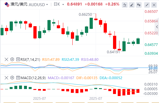 下行方面,主要支撑位出现在8月1日记录的两个月低点0.6419。跌破该水平可能会给澳元/美元带来下行压力,以测试6月23日创下的三个月低点0.6372。