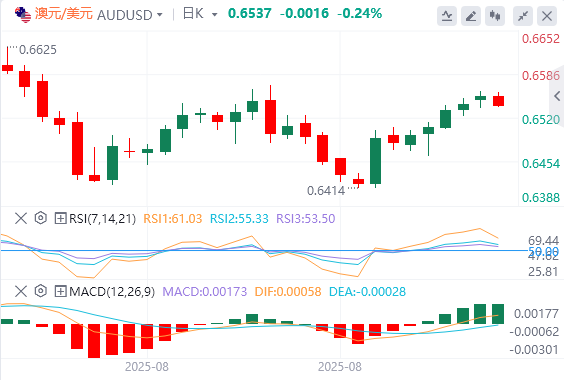 下档方面,主要支撑位出现在上升趋势线,与9日均线0.6520一致,随后是50日均线0.6502。跌破这一关键支撑区域将表明看跌倾向的出现,并促使该货币对测试8月21日创下的三个月低点0.6414。