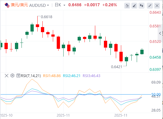 澳储银行11月会议纪要显示,央行可能会在较长时间内维持利率不变。澳交所30天银行间现金利率期货显示,截至11月25日,2025年12月合约交易为96.41,这意味着在即将召开的澳储银行董事会会议上,利率从3.60%降至3.35%的概率为6%。