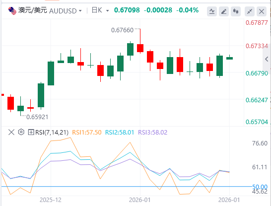 澳元/美元汇对周二的交易价格约为0.6710。日线图分析显示该货币对在九日指数移动平均线(EMA)附近盘整,显示短期偏向中性。与此同时,14天相对强弱指数(RSI)位于56.70,仍位于中线以上,强化了基础的上涨动能。