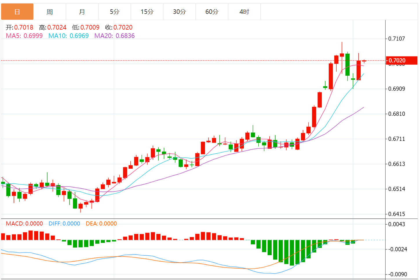 与大宗商品价格联动紧密的澳元在1月29日一度攀升至70.94美分,创下2023年2月以来最高水平,但随后快速回落。此次调整恰逢国际金价从历史峰值暴跌近12%——而金价见顶当天正是澳元触顶之日。