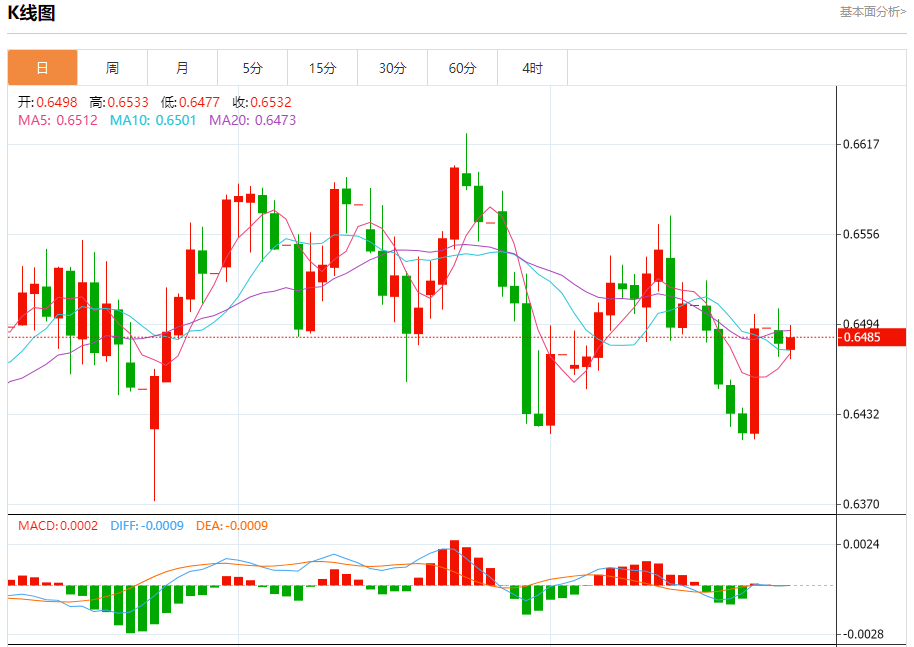 澳元兑美元今日汇率最高0.6488,最低0.6486,涨跌-0.0007,涨跌幅-0.10%。 市场基本面分析 澳洲联储公布的会议纪要显示,在本月作出降息决定时,委员会认为未来一年内可能仍需进一步放宽货币政策。至于具体的宽松节奏,将呈现数据依赖特征——既可能采取渐进方式,也可能在必要时加快步伐,关键取决于经济