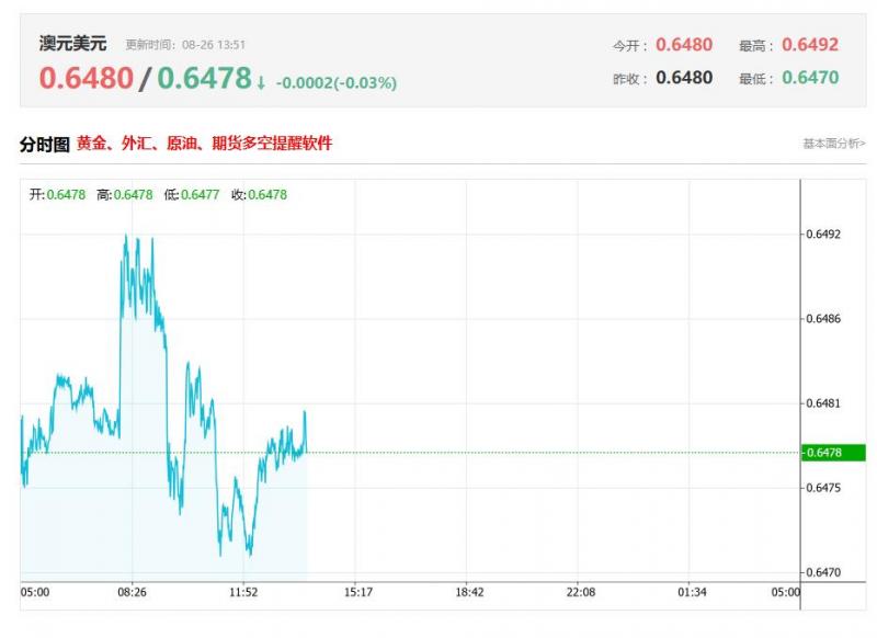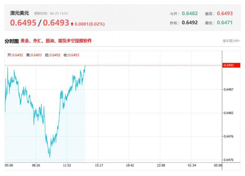 澳元兑美元今日汇率最高0.6480,最低0.6478,涨跌-0.0002,涨跌幅-0.03%。 市场基本面分析 部分美联储官员近期表态也显示出政策灵活性。芝加哥联储主席古尔斯比表示,“9月会议一切仍是开放的,当前经济信号存在矛盾”;波士顿联储主席柯林斯也指出,“9月降息存在可能性,近期关税政策带来的压力及劳动力