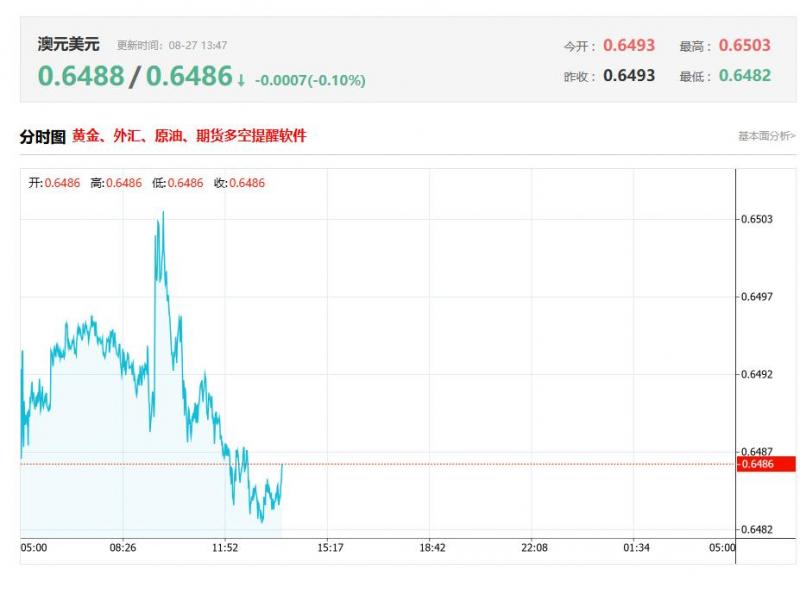2025年08月27日06时49分澳大利亚元/人民币汇率最新报价