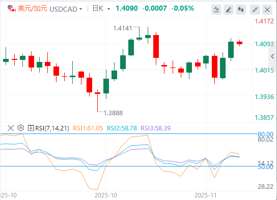美元/加元可能会测试1.4100的心理水平,随后是11月5日达到的七个月高点1.4140。进一步突破该水平将使该货币对测试上升通道的上边界1.4210。