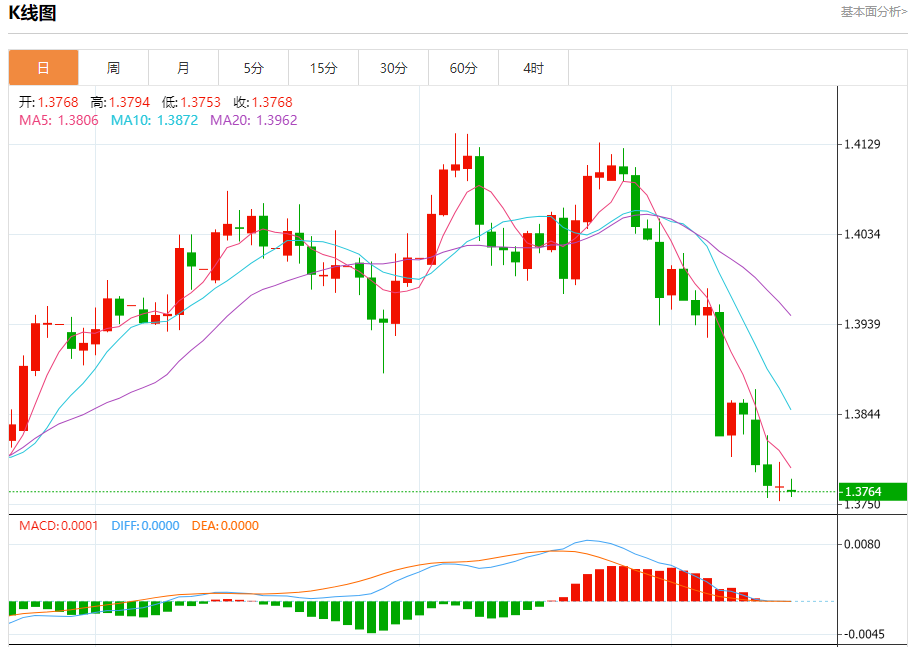 技术上来看,美元/加元在跌破1.3800关口后,将会看向1.3730区域,这里是8月-9月三次形成底部的区域,一旦失守该区域,则将看向1.3600附近的底部区域。