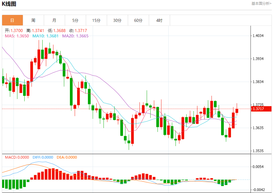 周二亚盘,美元/加元徘徊于1.3737附近,加元(CAD)在周一进一步削减涨幅,标志着新交易周的开始,加元对美元(UD)再次下跌。加元较上周高点下跌近1.25%,使得美元/加元再次回到1.3700以上,并对关键技术均线发起新的冲击。 市场基本面分析 加拿大央行(BoC)计划在本周中期发布最新的利率决策。然而,美国(U)联邦