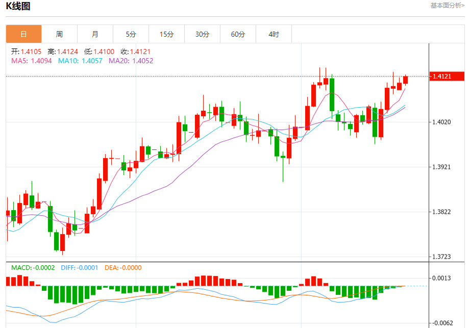 周二亚盘,美元/加元徘徊于1.4108附近,日内上涨0.01%。本周将公布关键的加拿大国内生产总值(GD)增长数据,但加元交易者将被迫等到周五才能获得任何重要的以加元为中心的经济数据发布。在美国方面,最新一轮的生产者价格指数(I)通胀更新将于周二发布。 市场基本面分析 加拿大元(CAD)在周一对美元(UD)难以找到