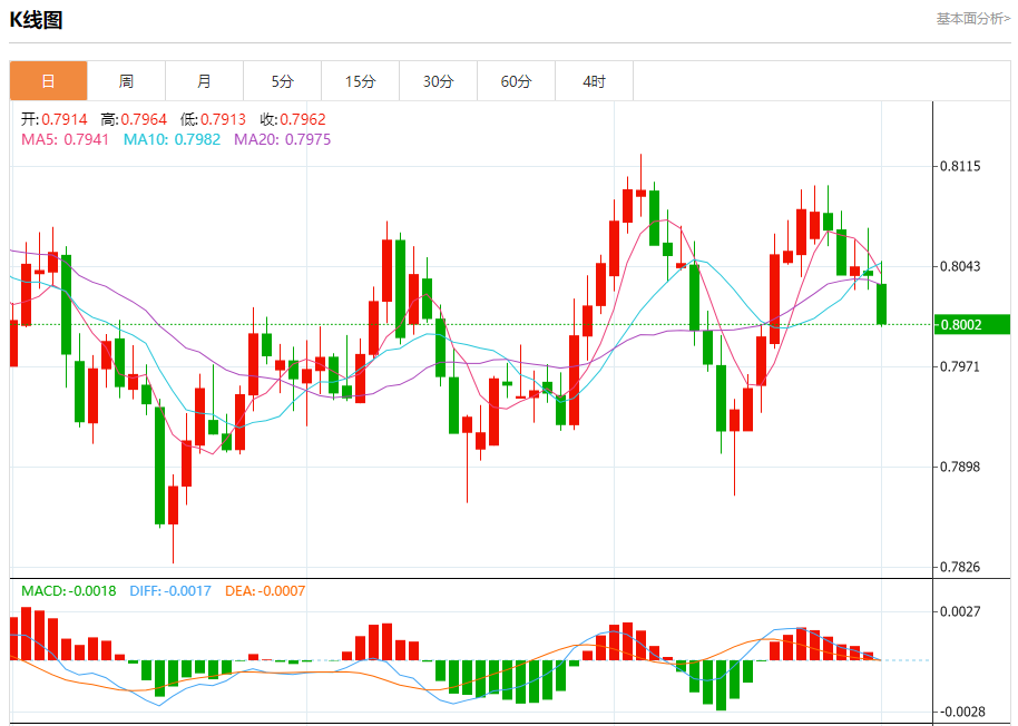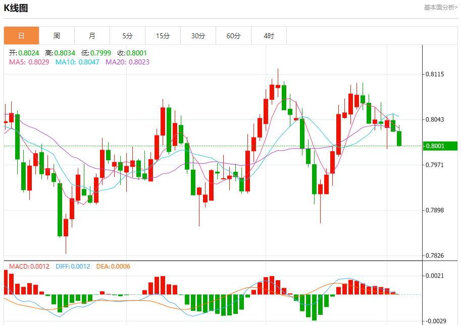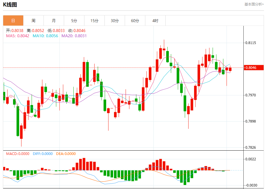 12月4日,周四欧洲早盘,美元/瑞郎汇率在0.8010附近徘徊。瑞士法郎(CHF)因瑞士通胀数据走软而对美元走弱。交易员们正准备迎接周四晚些时候公布的美国每周初次失业救济申请报告。 瑞士联邦统计局周三发布的数据显示,瑞士消费者价格指数(CI)通胀率从上月的0.1%降至11月的0%同比。这一数字低于预期的0.1%。低于预期的
