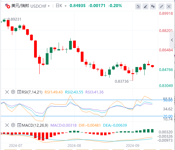 美元/瑞郎在前几个交易日测试0.6543后看跌反弹,在盘中和短期基础上恢复预期的看跌趋势,提醒您我们的目标从0.8455开始并延伸至0.8332。