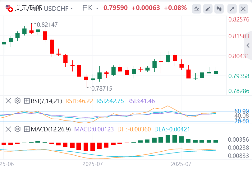 在美国和欧盟宣布贸易框架协议后,瑞郎兑美元回吐了风险偏好改善的涨幅,该协议对两国之间贸易的商品征收15%的全面关税。15%的关税税率将于8月1日生效。