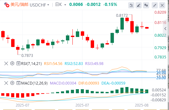 由于人们对美国关税对瑞士出口影响的担忧加剧,瑞士法郎(CHF)陷入困境,美元/瑞郎货币对的下行空间可能会受到抑制。特朗普政府宣布对瑞士商品征收39%的关税,高于4月份推出的31%的关税,并于8月7日生效。