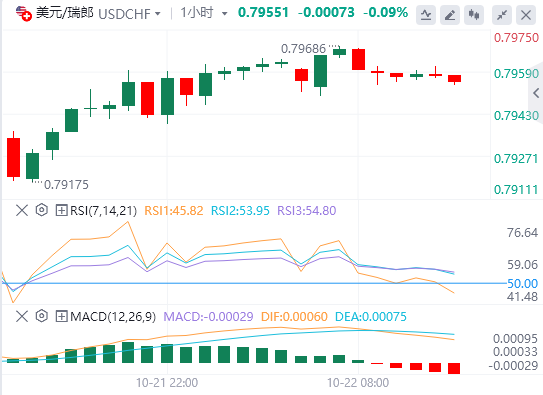 10月22日,周三欧市初盘,美元/瑞郎坚挺交易,接近周二的高点0.7970。瑞士法郎对因美国(US)和中国即将达成贸易协议的希望而普遍坚挺的美元(USD)表现出强劲。