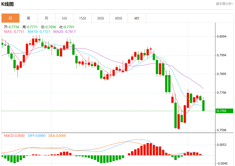 周二纽盘,瑞郎兑美元交投于0.7668,涨幅为0.08%。