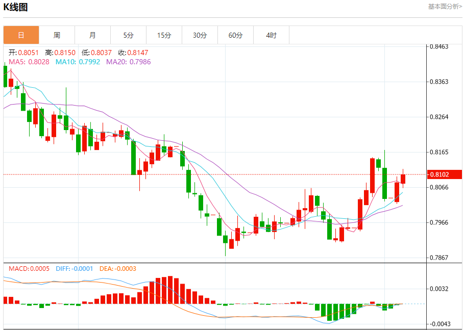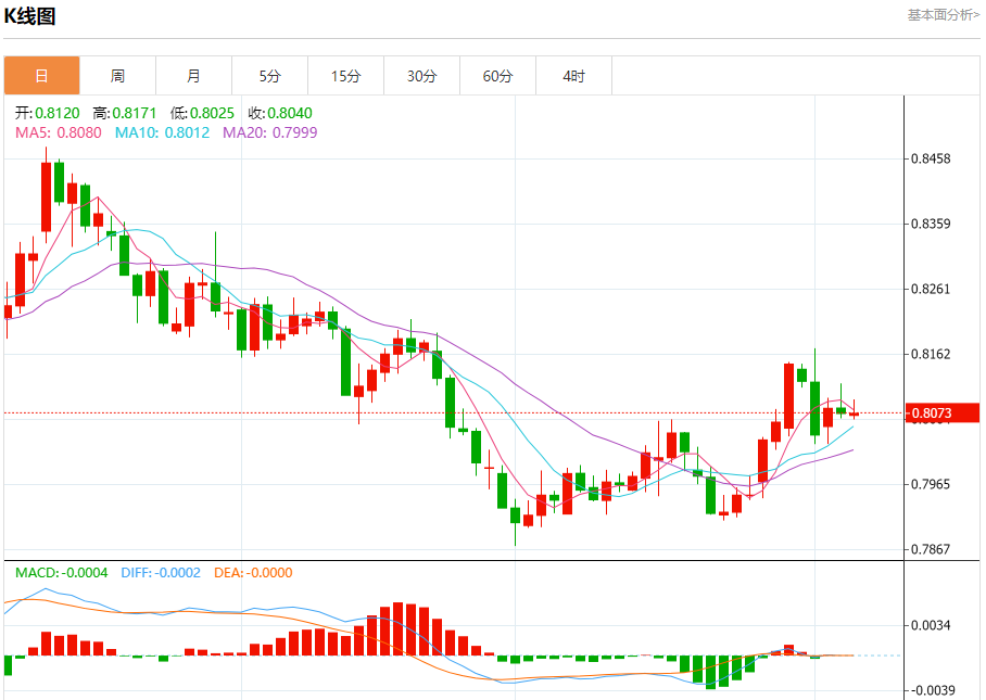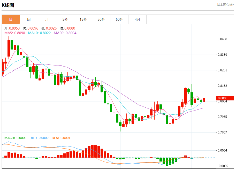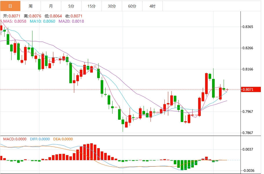 8月6日,周三欧市初盘,美元/瑞郎在连续两天上涨后小幅走低,交投于0.8070附近。由于围绕美联储(Fd)政策前景的鸽派情绪普遍存在,美元(UD)走弱,该货币对贬值。交易员可能会在当天晚些时候观察美联储(Fd)政策制定者的讲话,包括苏珊·柯林斯、丽莎·库克和玛丽·戴利。 美联储(Fd)预计将在9月份降息25个基点,