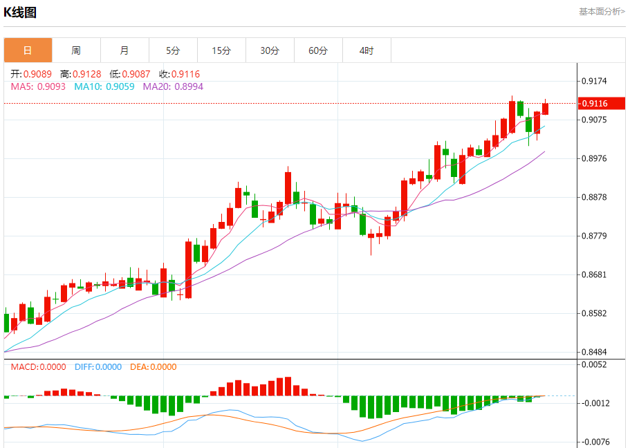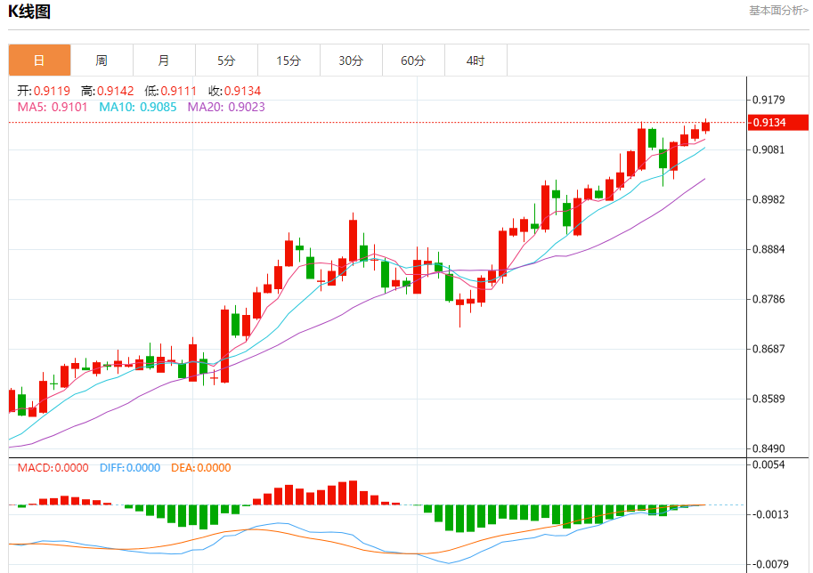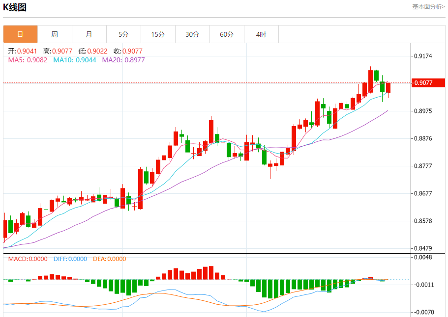 1月8日,周三欧市初盘,美元/瑞郎稳定在0.9090附近,延续了前一天的涨势。由于强劲的美国经济数据后投资者对美联储(Fd)利率前景的鹰派情绪转变,美元(UD)获得支撑,该货币对可能会走强。 最新的I服务业报告显示美国(U)活动增加和价格上涨,加剧了对持续通胀的担忧。交易员现在关注即将公布的美国就业数据,包括非