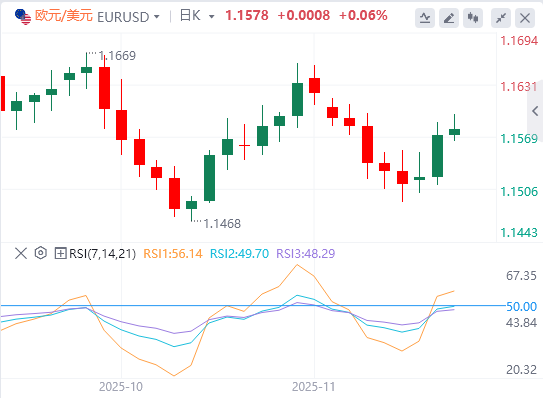 欧元拖累了美元走弱的支撑,近期美国数据提振了美联储12月降息的预期,而俄乌和平协议的希望也推动了市场情绪的改善。美国国债收益率下降对美元指数造成压力,该指数在过去三天内下跌了约0.6%。