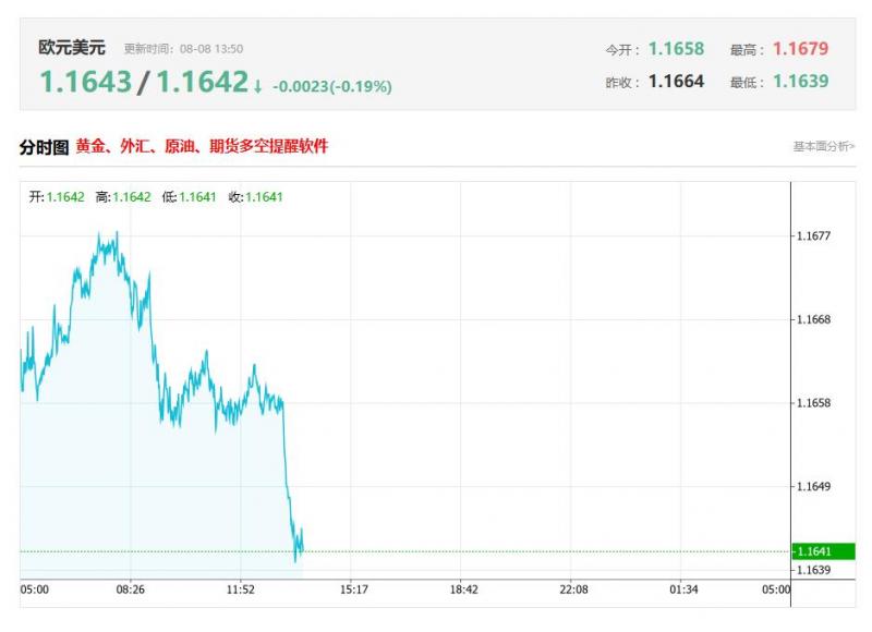 8月8日,周五欧市盘中,欧元/美元货币对从一周高点1.1700上方下滑,周五欧洲早盘交易于1.1645,因为有消息称克里斯托弗·沃勒(ChritohrWallr)是接替杰罗姆·鲍威尔(Jroowll)担任美联储主席的首选,美元反弹。 彭博社周四报道称,美国总统唐纳德·特朗普团队的成员在与美联储理事克里斯托弗·沃勒会面后印象深刻,尽