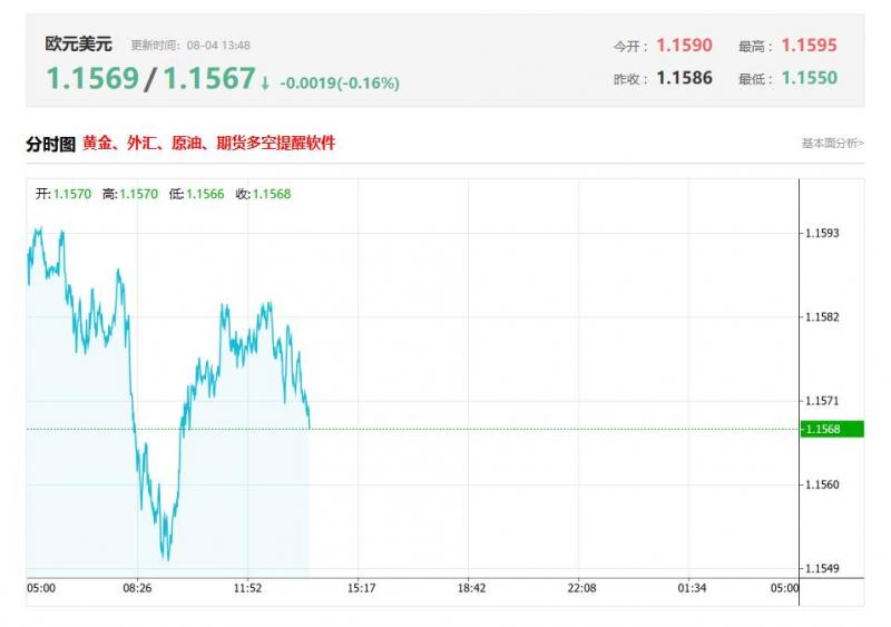8月5日,周二欧市盘中,欧元/美元周一小幅下跌。投资者开始接受周五严峻的美国非农就业报告,但人们对这些数据可能已经为美联储下个月降息带来压力的更高希望正在成为美元复苏的阻力。 欧元从上周五高点1.1600回落后,仍稳定在1.1550上方。该货币对从美国非农就业报告(NF)发布前触及的数周低点1.1400反弹后,占据了周
