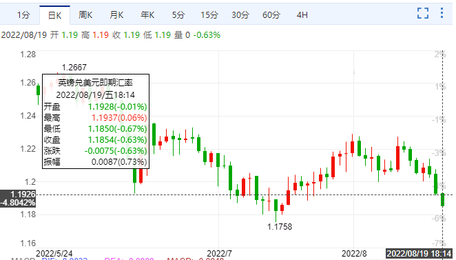 截止18:14:02,英镑兑美元汇率现报价1.1852。