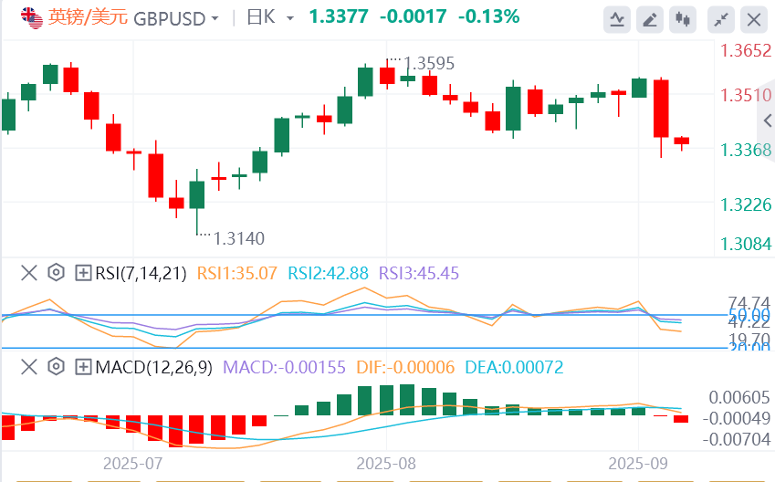 周三,英镑/美元交投于1.3400下方。英镑/美元货币对的近期趋势已转为看跌,因为它跌破了20日指数移动平均线(EMA),该平均线交投于1.3463附近。