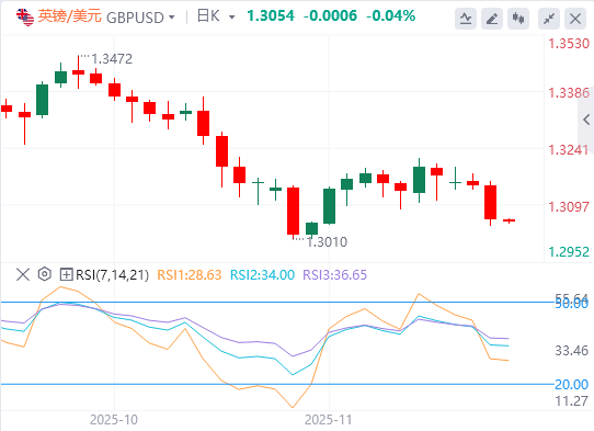 11月20日,周四亚市早盘,英镑/美元徘徊在1.3054附近。