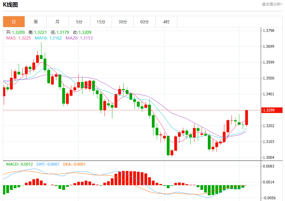 周三欧市盘中,英镑兑美元交投于1.3301,涨幅为0.67%。